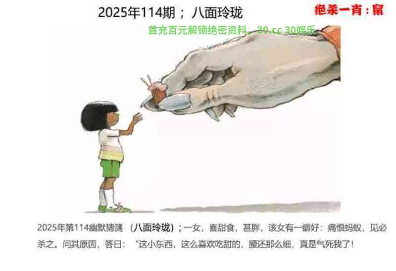 一女,喜甜食,甚胖,该女有一癖好:痛恨蚂蚁,见必杀之。问其原因,答曰:“这小东西,这么喜欢吃甜的,腰还那么细,真是气死我了